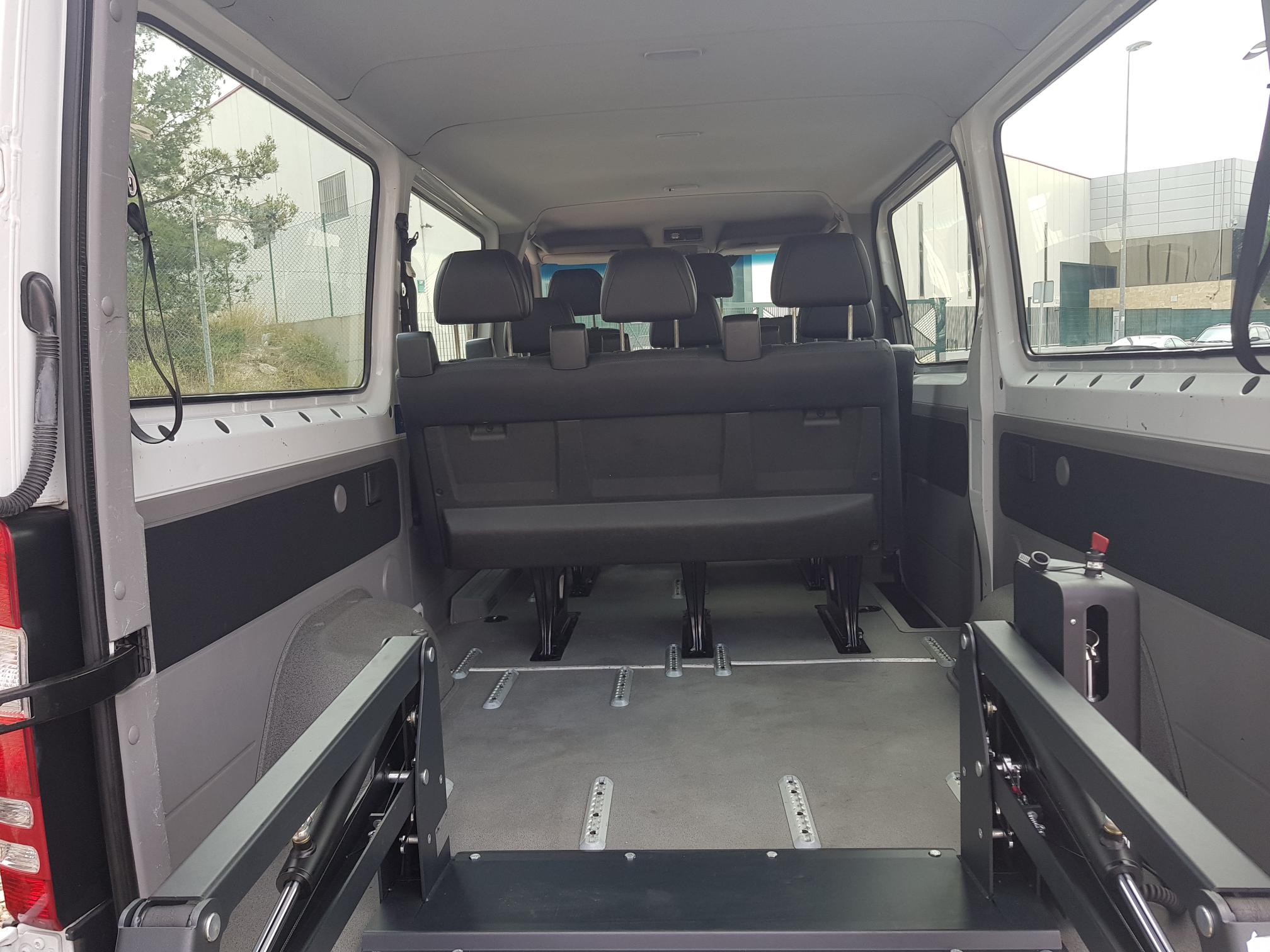 MERCEDES sprinter 311 CDI del año 2013. Motor diesel de 130 CV con 198.700 kms con libro oficial de mantenimiento. Equipamiento: aire acondicionado, elevalunas eléctricos, cierre centralizado, cambio manual, ABS, ESP, doble airbag, radio CD, etc. Dispone de plataforma eléctrica trasera y guías con anclajes para fijación de sillas de ruedas, con una homologacion de 9 plazas o 6 plazas sentadas mas 3 silla de ruedas. El vehículo se entrega revisado, transferido y con un año de garantía.Su precio es de 18.000€ con todos los gastos incluidos
