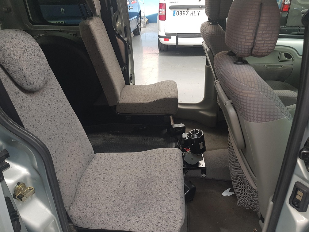Renault Kangoo 1.6 gasolina. La adaptación consta de un rebaje de suelo en la parte trasera e instalacion de rampa manual. Guias y anclajes para fijacion de silla de ruedas. Plazas finales: 4 mas 1 silla de ruedas quedando esta integrada con un acompañante a su lado. Vehïculo homologado, revisado, transferido, con 1 año de garantia e ITV pasada. Consultar precio de venta. (I.V.A al 4%)