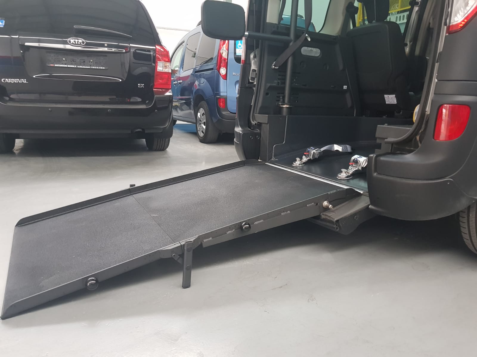 Rebaje de suelo en la parte trasera con rampa de acceso. Guias y anclajes para fijacion de silla de ruedas. Plazas finales: 3 mas 1 silla de ruedas quedando esta totalmente integrada en el habitaculo. Vehïculo homologado, revisado, transferido, con 1 año de garantia.